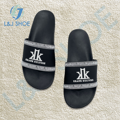 صناديق انزلاقية بسيطة مخصصة للرجال من مصنع الأحذية L & J مع شعار نعال خفيفة الوزن عصرية للصيف